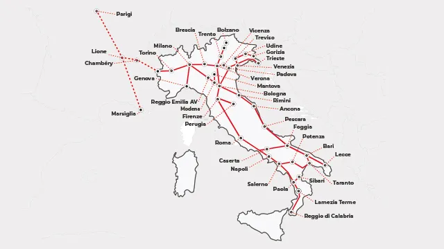 Italien ist sein Hochgeschwindigkeitsnetz am Ausbauen. So startet der Frecciarossa von Milano nach Bari für weniger als chf 100. Und das in weniger als 7 Stunden.